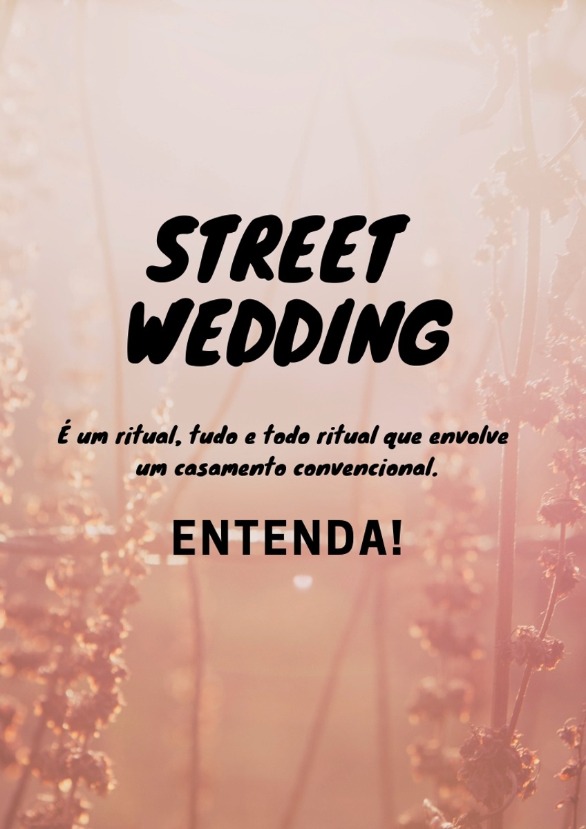 Falar de casamento é o mesmo que falar de sonho, e aqui, nós acreditamos que devemos sim batalhamos para vivê-los. Não importa se o casamento é de grande, pequeno, médio porte, quem está vivendo esse momento, com certeza planejou o melhor dentro de sua própria realidade. O mais incrível Street Wedding proporciona, é exatamente isso, ele é pra você que quer viver a experiência dos rituais de um casamento de forma mais intimista, ele é pra você que de repente não conseguiu aproveitar tudo o que queria através das fotos pela correria natural de um evento. Ele é pra você que não quer, ou não pode fazer festa, mas tem o sonho de vestirem-se de noivos, ele é pra você que sonha em renovar votos... Enfim, o Street Wedding é seu, é meu, é nosso! Entenda!